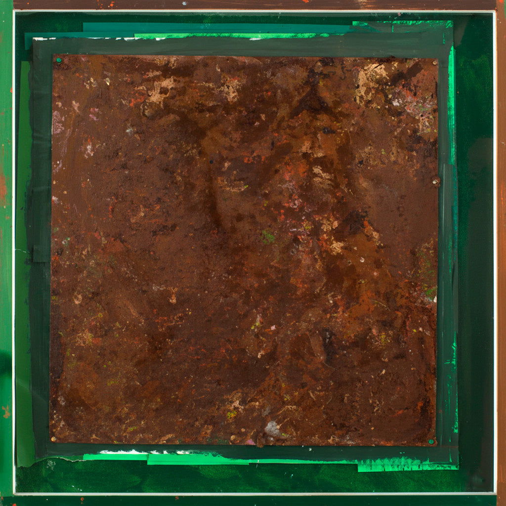 Medium: Mixed Media oil on paper on wood behind, painted frame.
